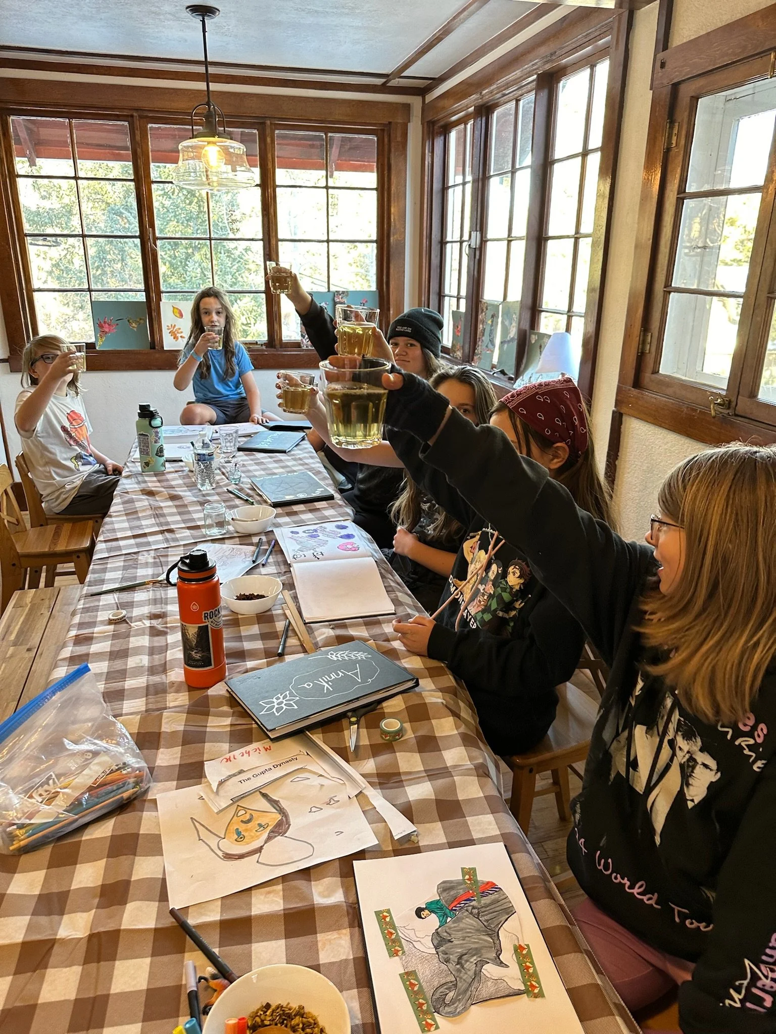 The highlight, though, was creating our own root beer! Imagine a group of children, noses inches from jars, sniffing combinations of spices and roots like Medieval apothecaries. We carefully measured ingredients, stirred with precision, and when the root beer was ready, raised our hands in a viking toast, “Til Valhallar, Skol!” In between sips, giggles, and a few gags (homemade root beer is not for everyone) we drew pictures of the licorice plant and labeled our creations in the main lesson books, the pages filling with careful drawings and the occasional smudge of sticky root beer.