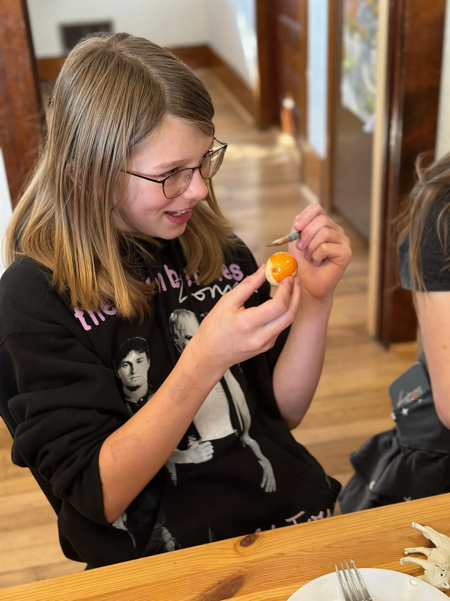 Our history lesson took us to Tangier and the Rock of Gibraltar, where Amy told the story of Tariq ibn Ziyad and his daring invasion of Visigoth Spain. The kids sat wide-eyed learning how Tariq gave his troops a seemingly crazy order to burn the 1,000 ships they had just sailed to Spain on because there was no going back. The discussion of Berber ingenuity and determination set the stage for a hands-on, and (debatably delicious) project - making marzipan oranges.